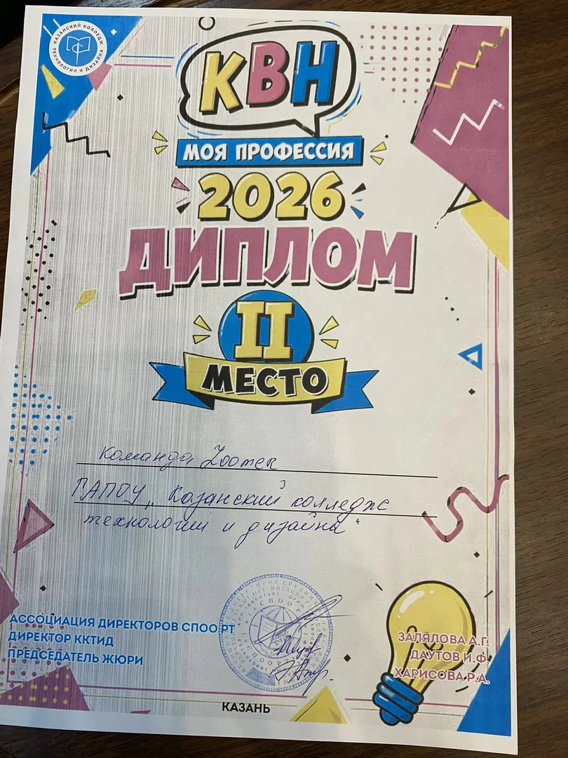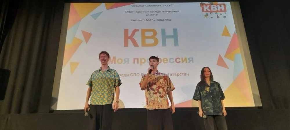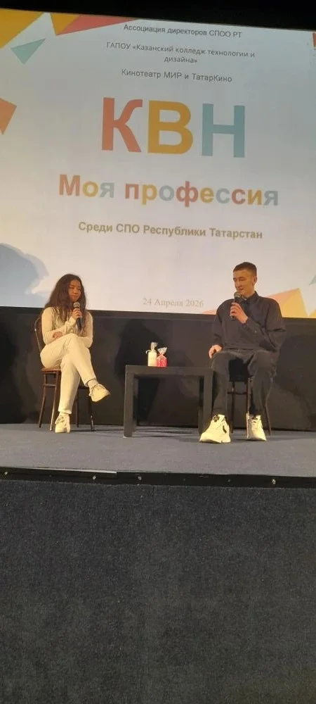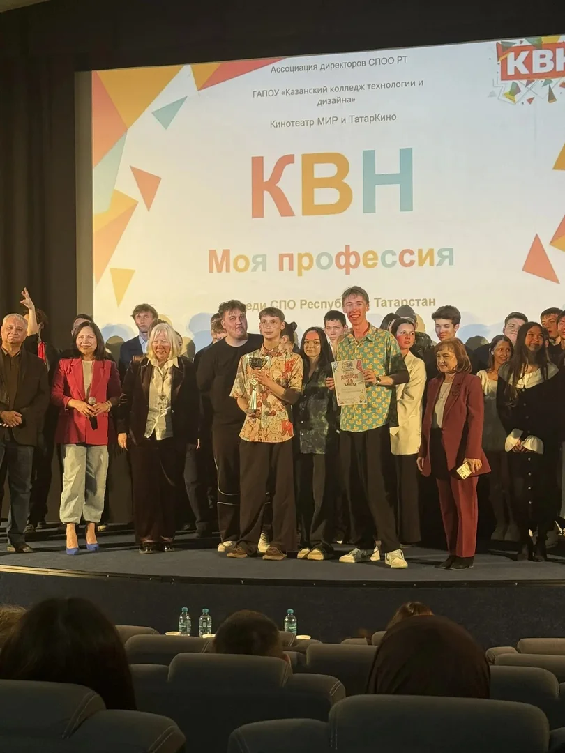 24 апреля 2026 года состоялся lll чемпионат команд КВН среди СПО республики " Моя профессия", инициаторами которого выступил ГАПОУ "Казанский колледж технологии и дизайна" по плану мероприятий Ассоциации директоров СПОО РТ. В финальной игре встретились шесть команд из пяти учебных заведений на площадке " Татаркино" в кинотеатре "Мир", которые гостеприимно принимали чемпионат КВН во второй раз. Открыла КВН заместитель директора по учебно-воспитательной работе ККТД , председатель Совета по ВР ПОО РТ, Веледенская Ольга Владимировна. Ведущие Дана и Макар вели КВН весело и элегантно. В зале царила атмосфера юмора, находчивости и и хорошего настроения. Команды и болельщики очень доброжелательно поддерживали выступления соперников. Чувствовалась и связь поколений: студенты горячо приветствовали членов жюри, руководителей команд и организаторов КВН. Итоги КВН следующие: В третий раз подряд победителем стала команда КВН Международного колледжа сервиса " РБК". Второе место заняли 2 команды: Казанского колледжа технологии и дизайн " Zoomer"и команда Казанского педагогического колледжа " Педагогический десант". Третье место заняла команда Лаишевского технико-экономического техникума " Выше - к небу!". Дипломы участников вручены командам " Зеленодольского механического колледжа" " NT-хорошая попытка" и Казанского колледжа технологии и дизайна " Креативные шьюшки". Победителям вручен Кубок, всем командам дипломы. В качестве подарка Председатель жюри Харисова Райса Абуталиповна , шоумен, работник культуры " Татаркино", при поддержке коллег :Ахмаева Эдуарда Хайдаровича- руководителя кинотеатра " Мир" и Ольги Владимировны, спела песню под бурные аплодисменты и подтанцовку участников и ведущих КВН. Благодарим принимающую сторону" Татаркино", руководителей образовательных организаций и команд за хорошую воспитывающую игру , которая развивает любовь к избранной специальности , чувство профессионализма и патриотизма на тему " Моя профессия". Хочется сказать КВН - до свидания, до новых встреч! А тем, кто еще не присоединился или не выиграл , сказать: - "Дерзайте и выигрывайте! Верьте в себя и все получится!" Присоединяйтесь к нам в следующем году!