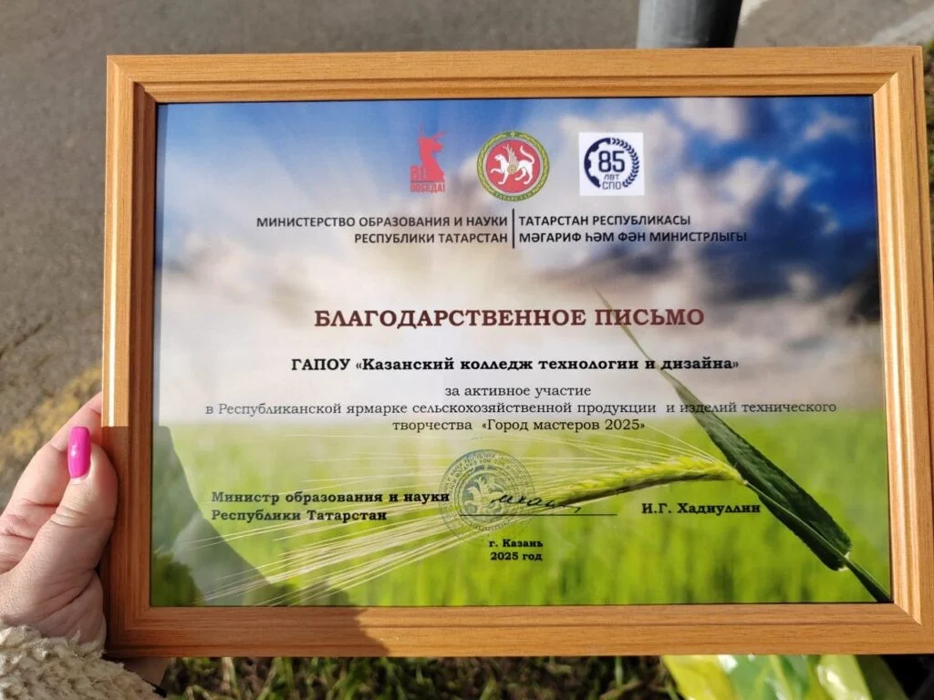 — Благодарственное письмо колледжу за активное участие в Республиканской ярмарке сельскохозяйственной продукции и изделий технического творчества «Город мастеров 2025»
