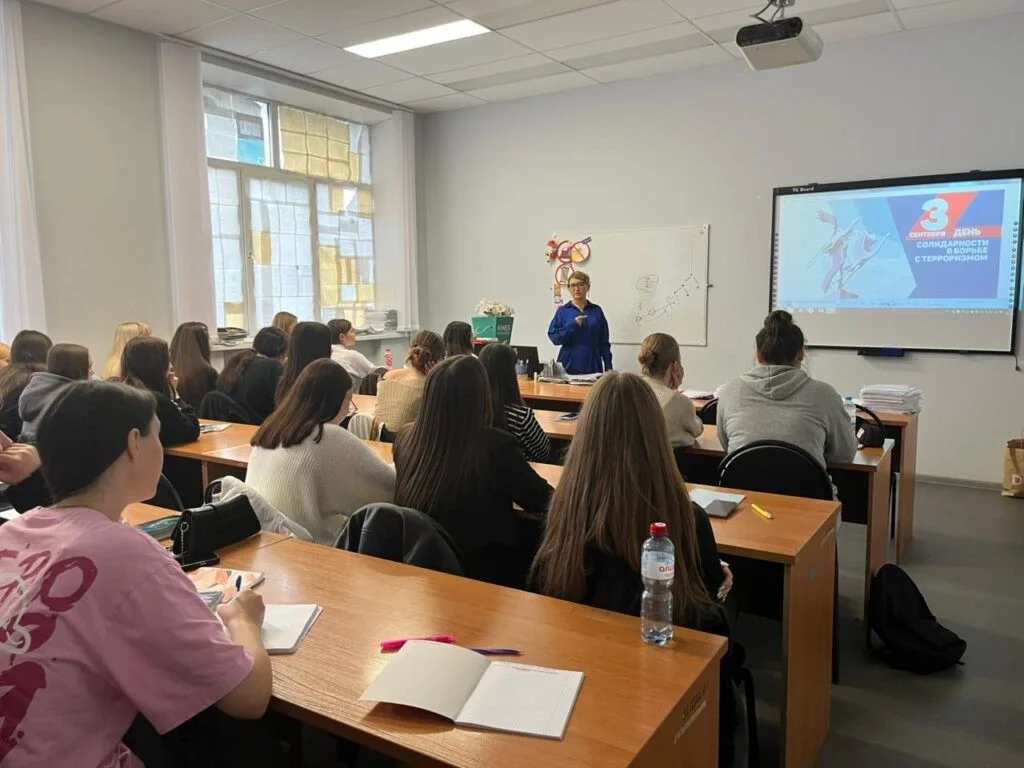 — Во всех группах колледжа проведены: — классные часы ‘ Памяти жертвам Беслана»; квесты педагогом-психологом по противодействию психологической опасности при террористической угрозе; тематические уроки в рамках дисциплин общественно-гуманитарного цикла, проведен День Здоровья с Акцией «Нет-терроризму!» .Группы участвовали в забеге, были выпущены плакаты для привлечения внимания прохожих и самих студентов к проблеме современности, звучали призывы «Нет-Терроризму!».